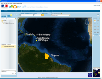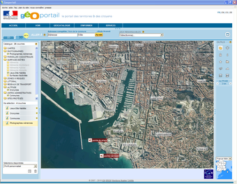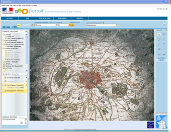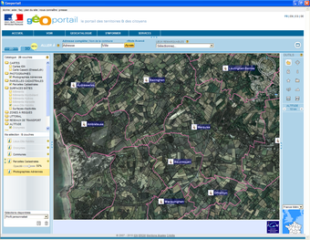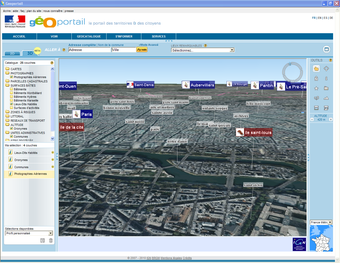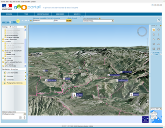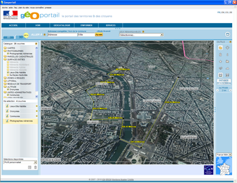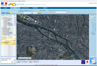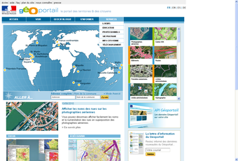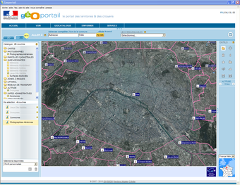 Géoportailest un portail du gouvernement français qui apporte une information géographique de référence sur tout le territoire. Mis en place par l'Institut Géographique National (IGN) en association avec le Bureau de Recherches Géologiques et Minières, cette plateforme permet de consulter les différentes données géographiques du territoire (parcelles cadastrales et photographie aérienne par exemple).